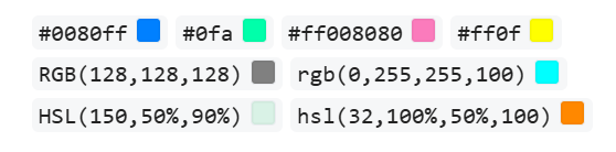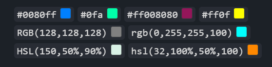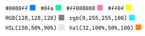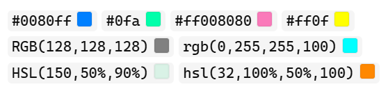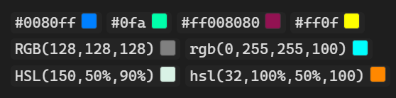 #RRGGBB #RGB #RRGGBBAA #RGBA