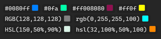 Inline Color Swatches shows a small color preview next to supported CSS color values written in inline code spans.