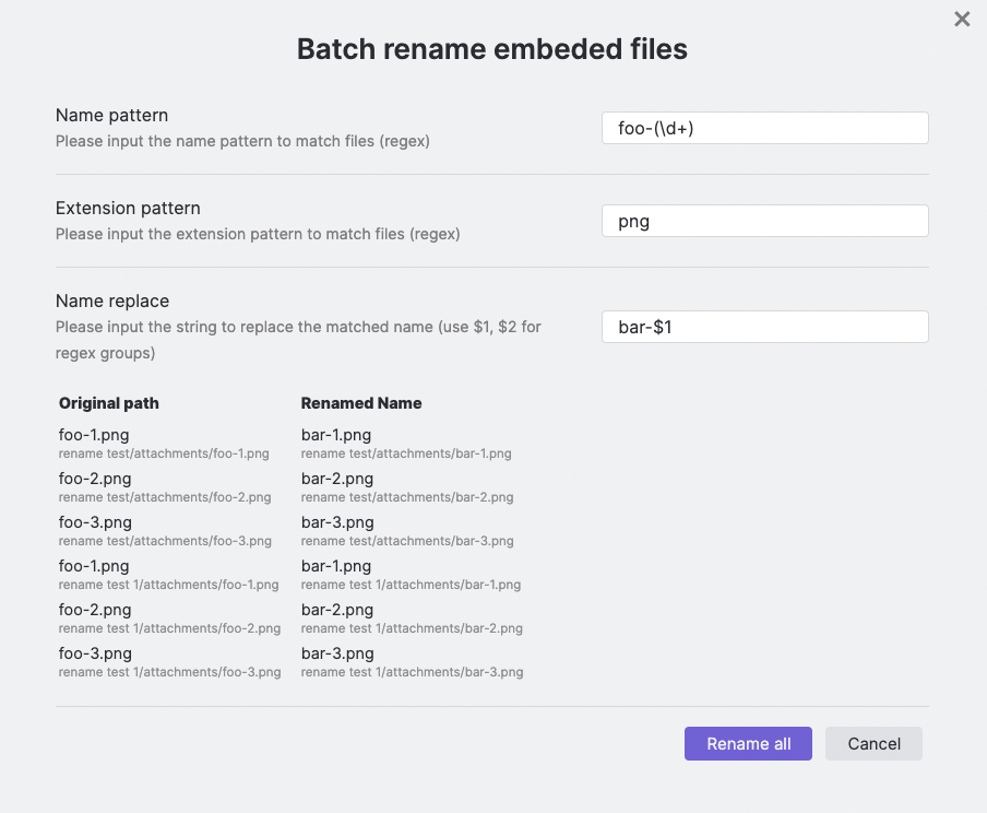 fileName = "My note", imageNameKey = "foo":{{fileName}}: My note, My note-1, My note-2{{imageNameKey}}: foo, foo-1, foo-2{{imageNameKey}}-{{DATE:YYYYMMDD}}: foo-20220408, foo-20220408-1, foo-20220408-2