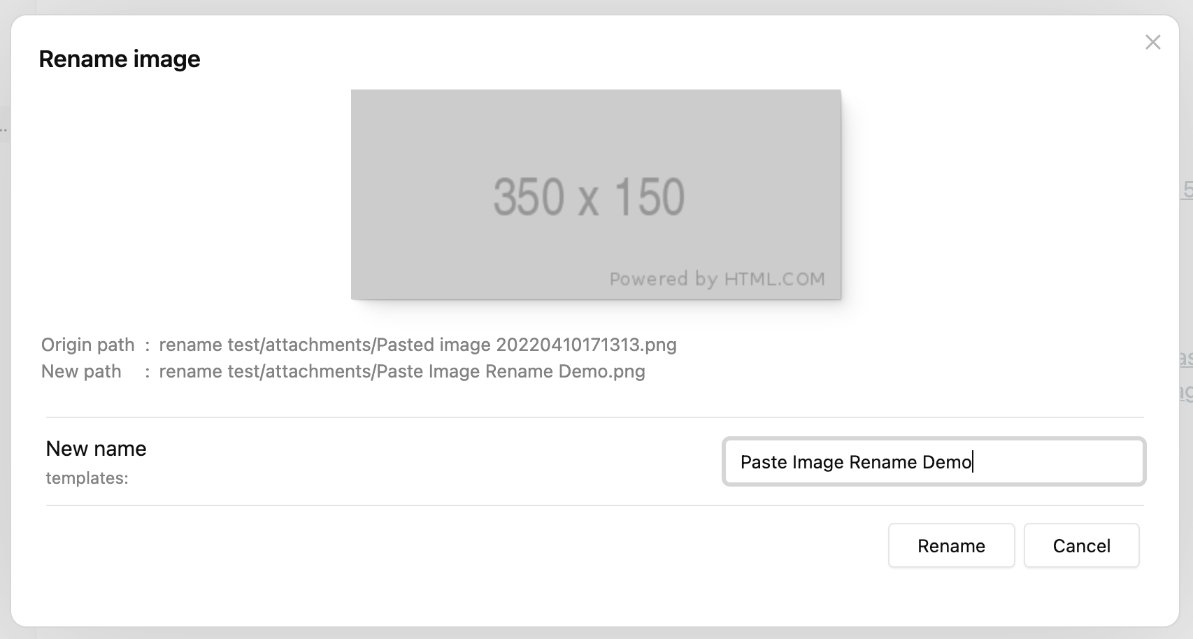 After installing the plugin, you can just paste an image to any document and the rename prompt will display: