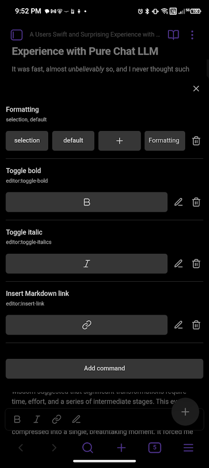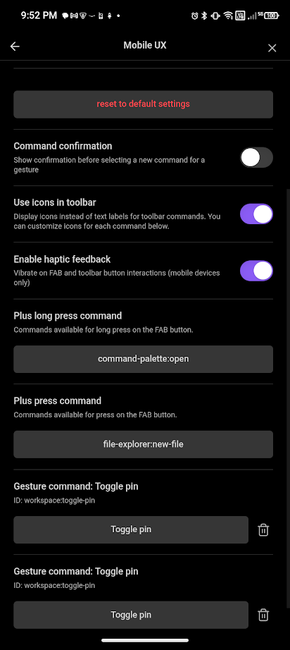 | Show built-in toolbar | Show Obsidian's built-in mobile toolbar at the bottom of the screen |