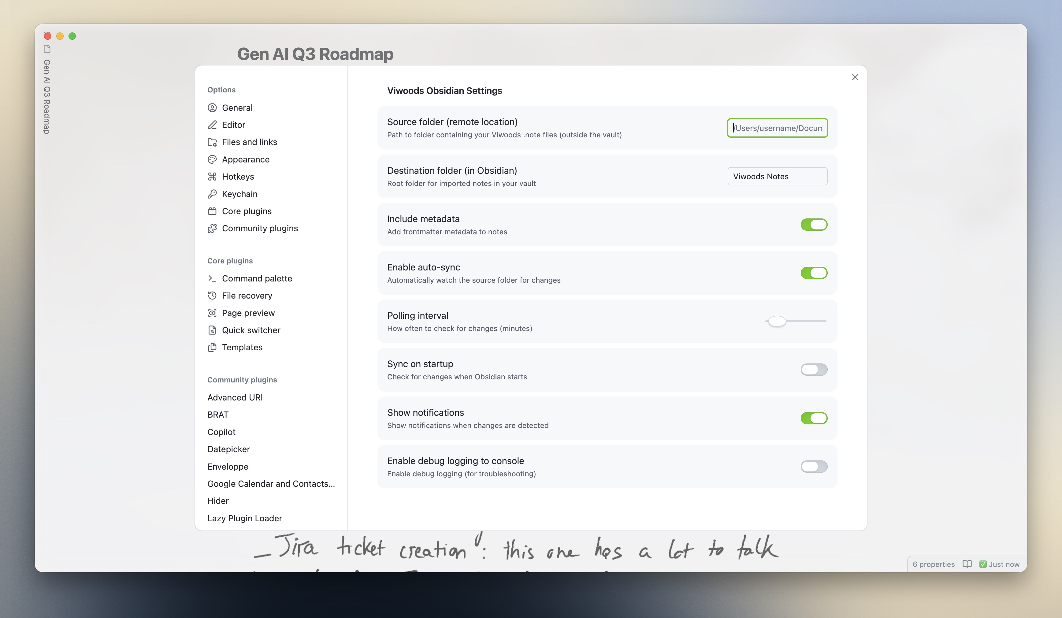 Configure sync behavior in Settings → Viwoods Obsidian: