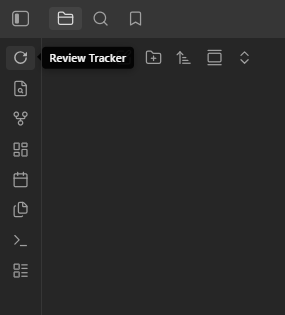 When the plugin is enabled, a Review Tracker button appears in the left sidebar of Obsidian.