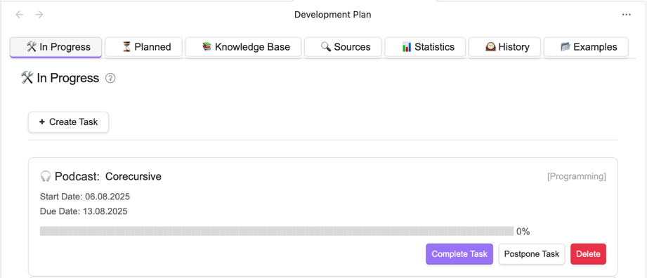 A comprehensive productivity Obsidian-plugin that helps you organize and track personal/professional development tasks.