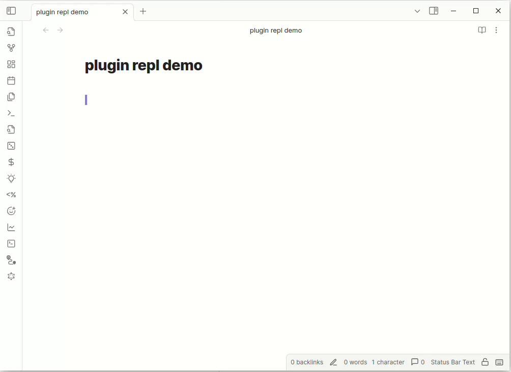 Plugin REPL adds an Emacs-like read evaluate print loop (REPL) to Obsidian. This lets you execute JavaScript directly in a document with a single key-press and see the result. It lets you interact with Obsidian's plugin API to make Obsidian do things (move the cursor, insert text, open files, etc). Once you have working code you define new commands directly in JavaScript.