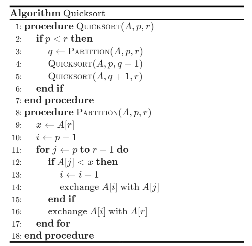 \State \Call{Quicksort}{$A, p, q - 1$}