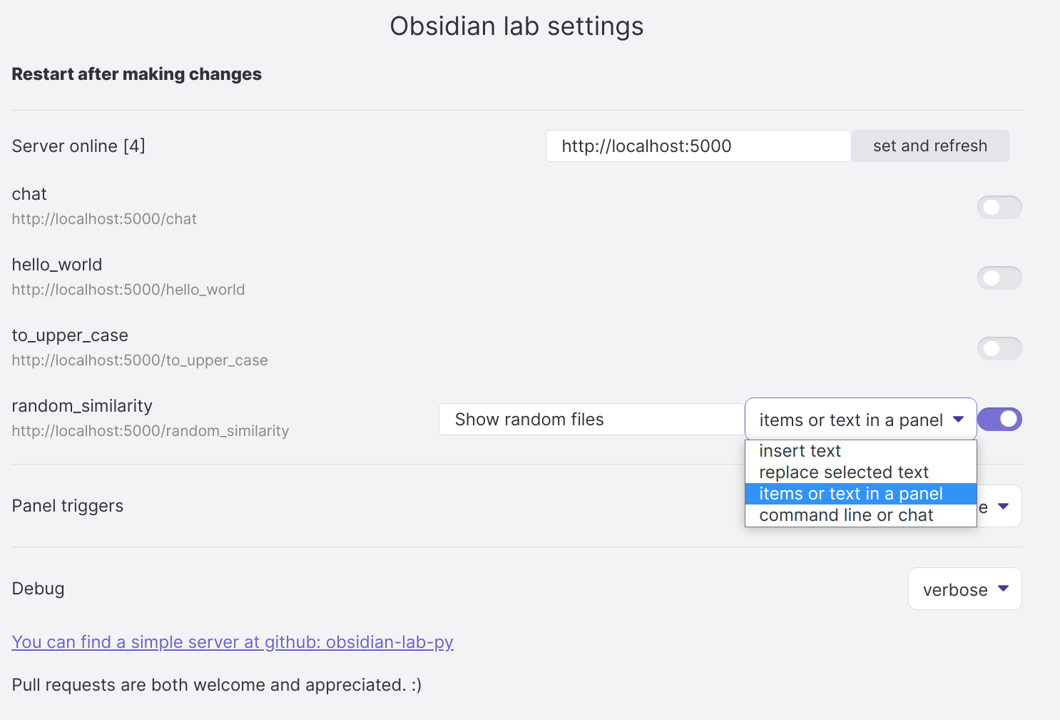 - When the user runs one of the plugin's commands, for example, 'replacing fancy text,' the plugin makes a POST call to your server with some context data, such as the current note, what was selected, etc.