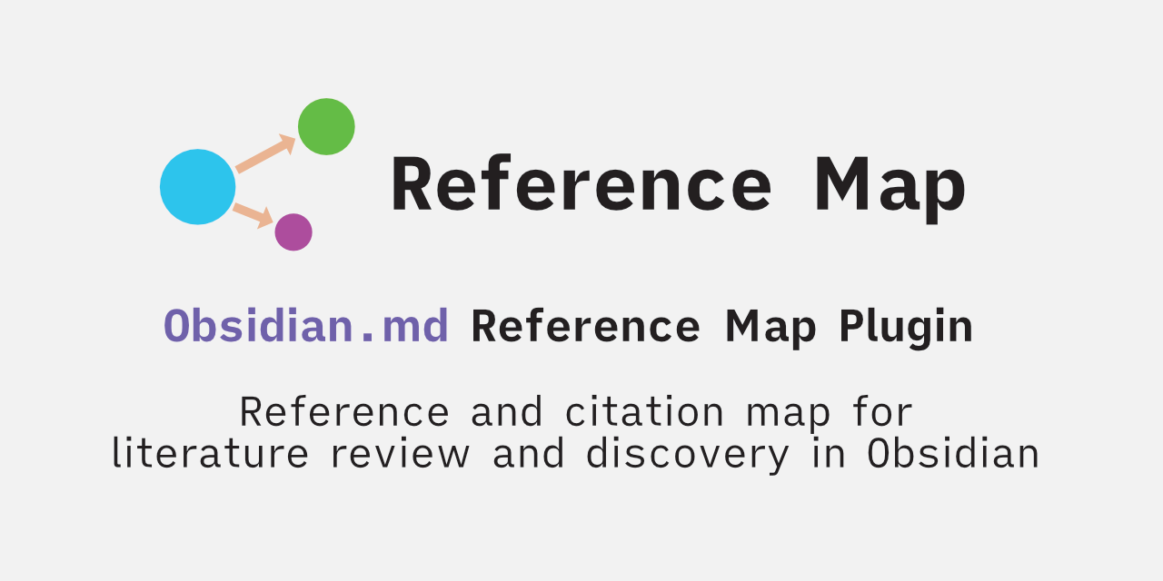 Reference Map is a plugin for Obsidian that helps you manage and create/discover references and citations. It provides a sidebar view to manage cited/citing references of your bibliography. You can use it to create a reference map for a paper(s). You can also quickly look up published documents related to a subject using the search functionality.