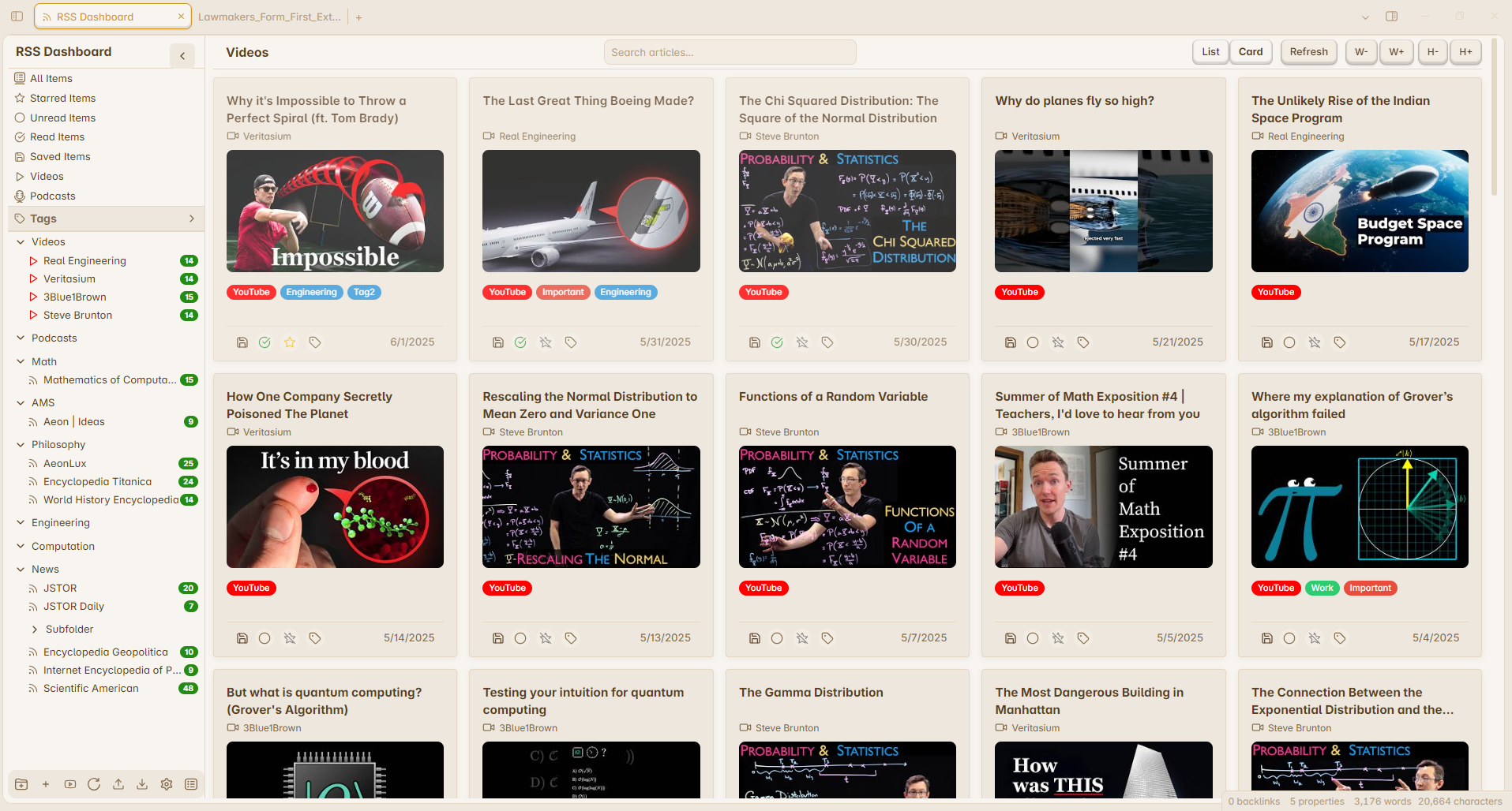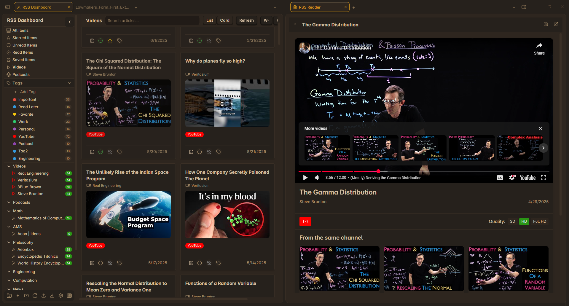 A dashboard for organizing and consuming RSS feeds, YouTube channels, and podcasts with smart tagging, media playback, and seamless content flow.