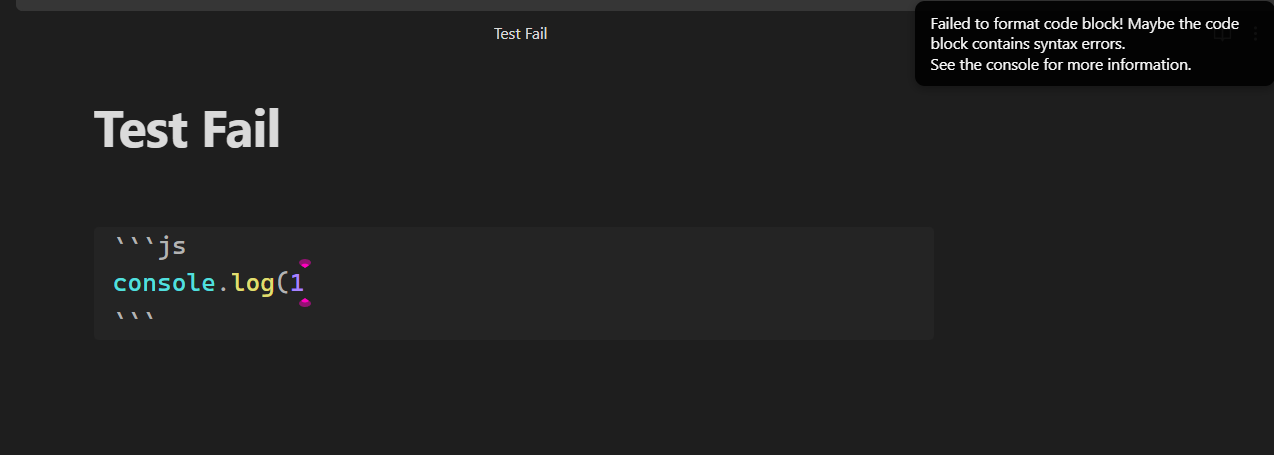 Make sure the Markdown syntax of the code block you want to format is correct.