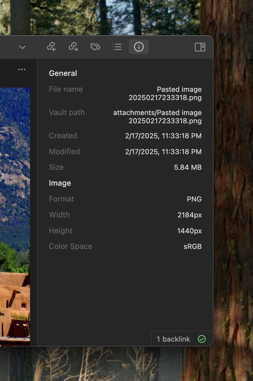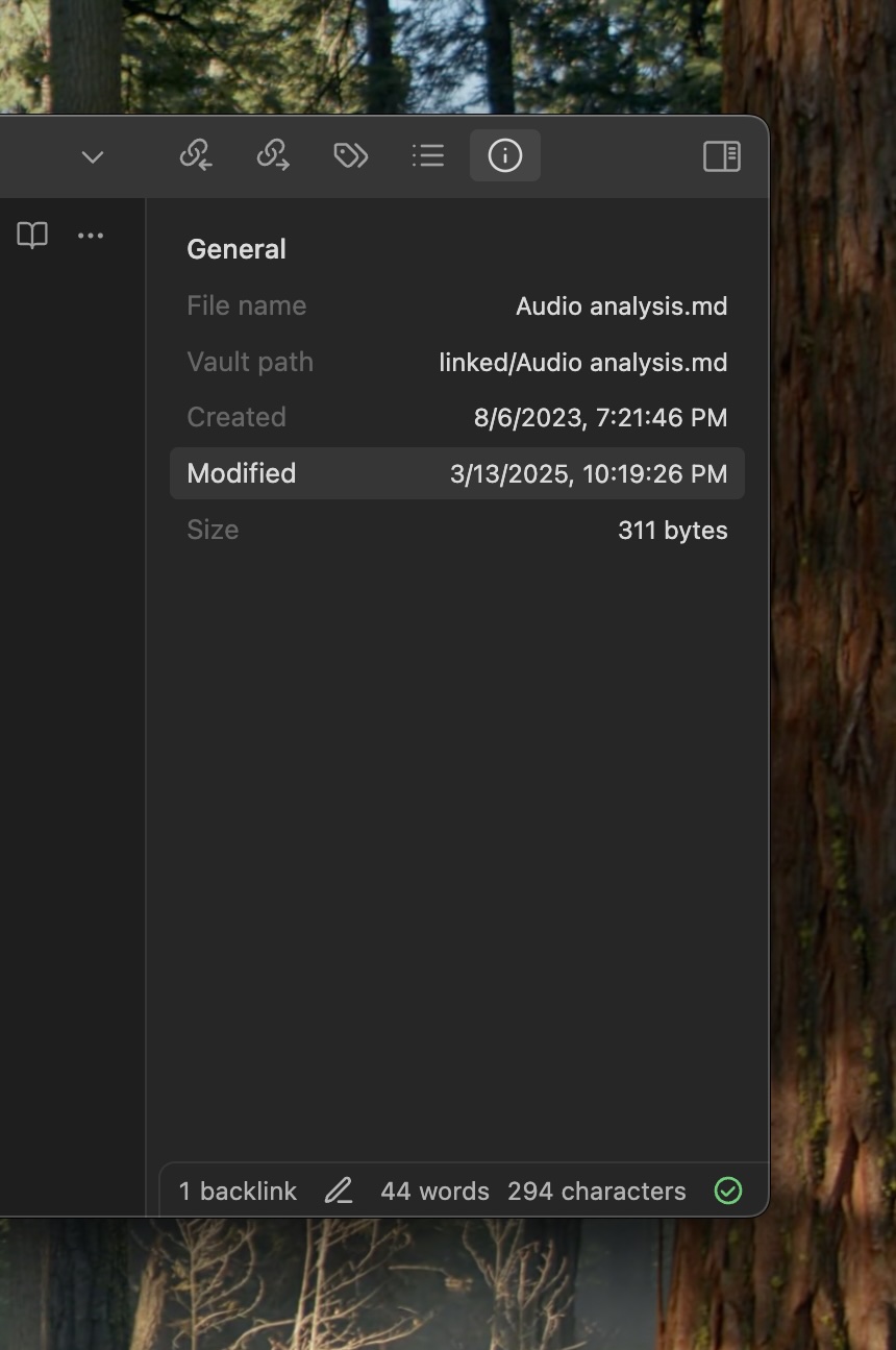 File info pane that lives in Obsidian's right sidebar. No more, no less.
