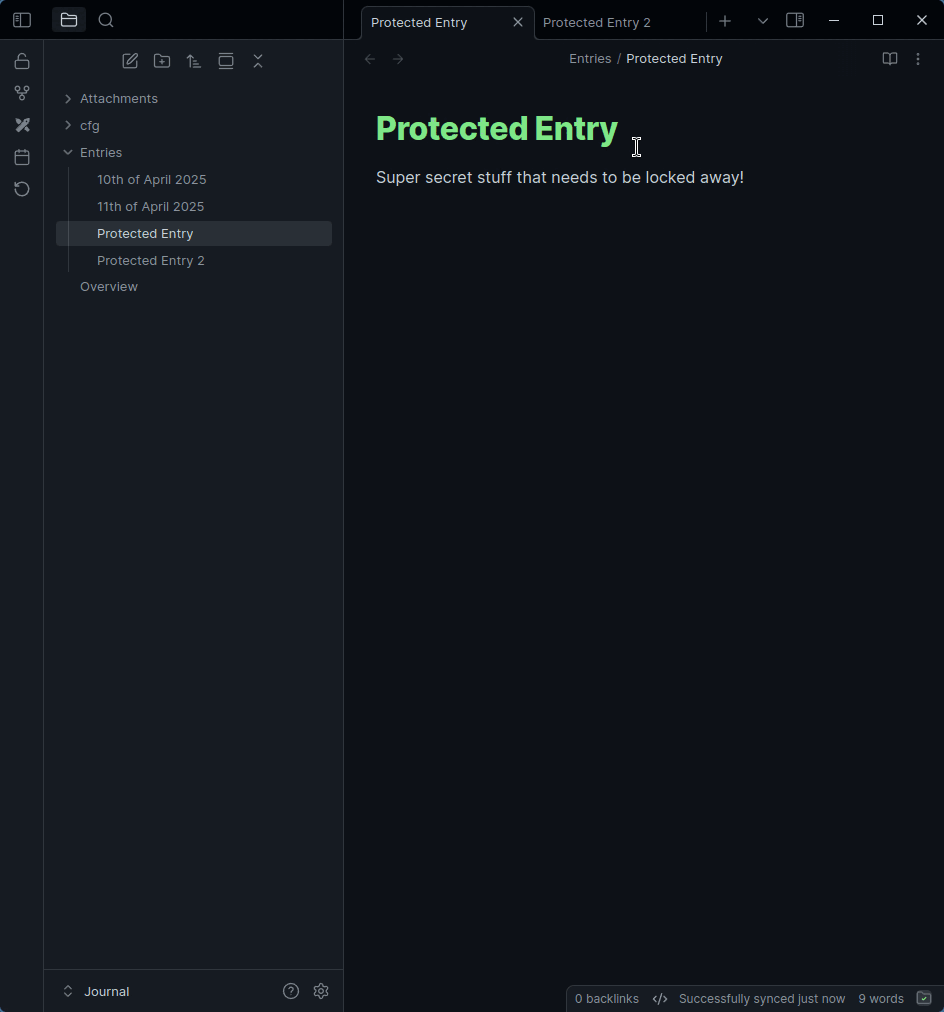 [!WARNING] This plugin DOES NOT encrypt files. So if you are looking for "real" security, you gotta use some other plugin - like Protected Note or Cryptsidian
