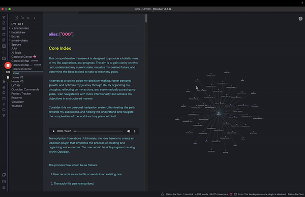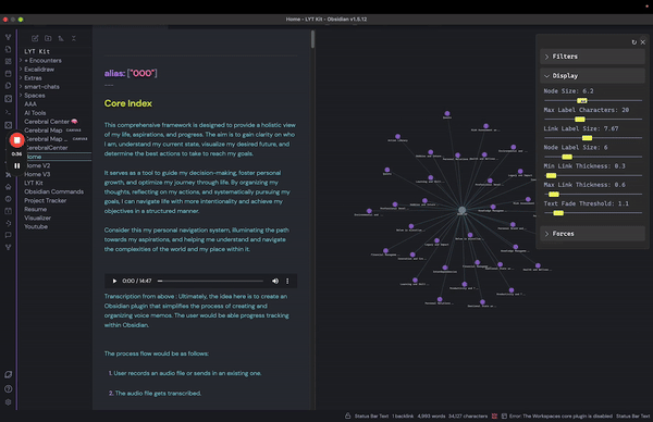 With this plugin, I envision a future where note-taking, whether text or voice, doesn't get lost. I struggle with maintaining a strict note-taking structure, and things often fall through the cracks. This challenge, combined with my obsession, drives me to create this plugin. While it's not perfect yet, it's a promising start and could improve significantly with your help :) I can hear the music.. and I'm excited to see who else can too!