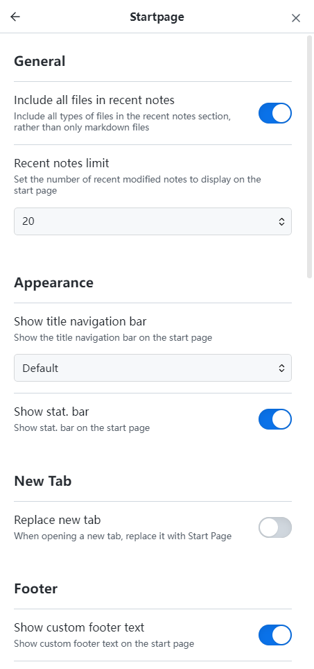 - Custom Footer Text: Enable and set custom footer text for the start page