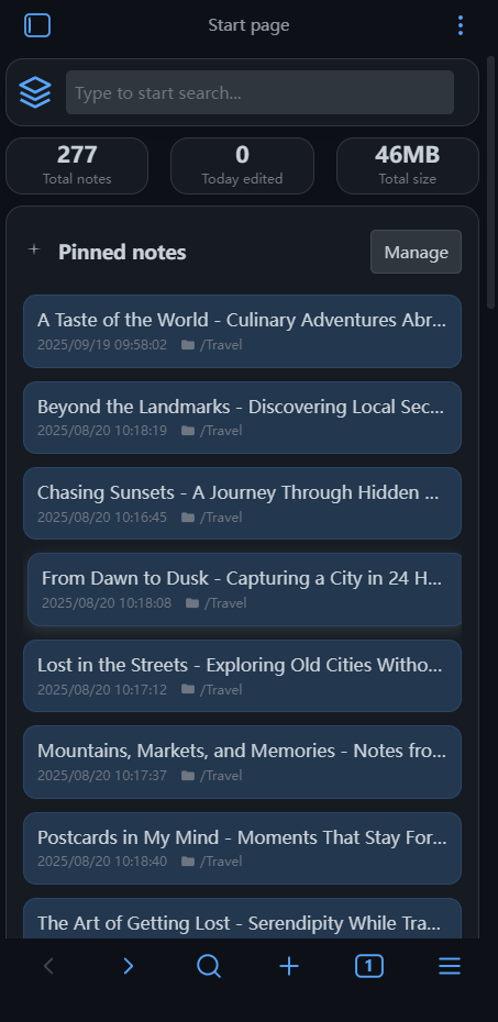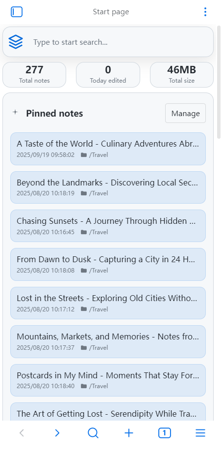 - Recent Notes: Display recently accessed and modified notes, intelligently sorted by both modification time and access time