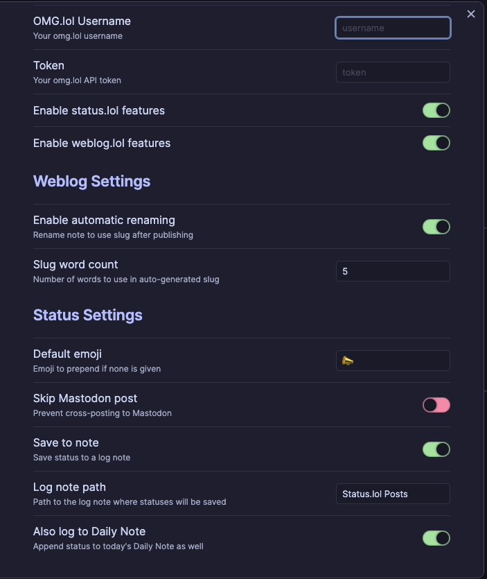 Since OMG.lol has a great API, there is more than can continue to be built out so why not make this plugin more expandable than the original concept.