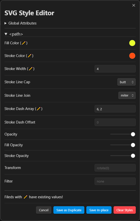 - Save as Duplicate: Creates a new copy of the SVG with the updated styles applied.