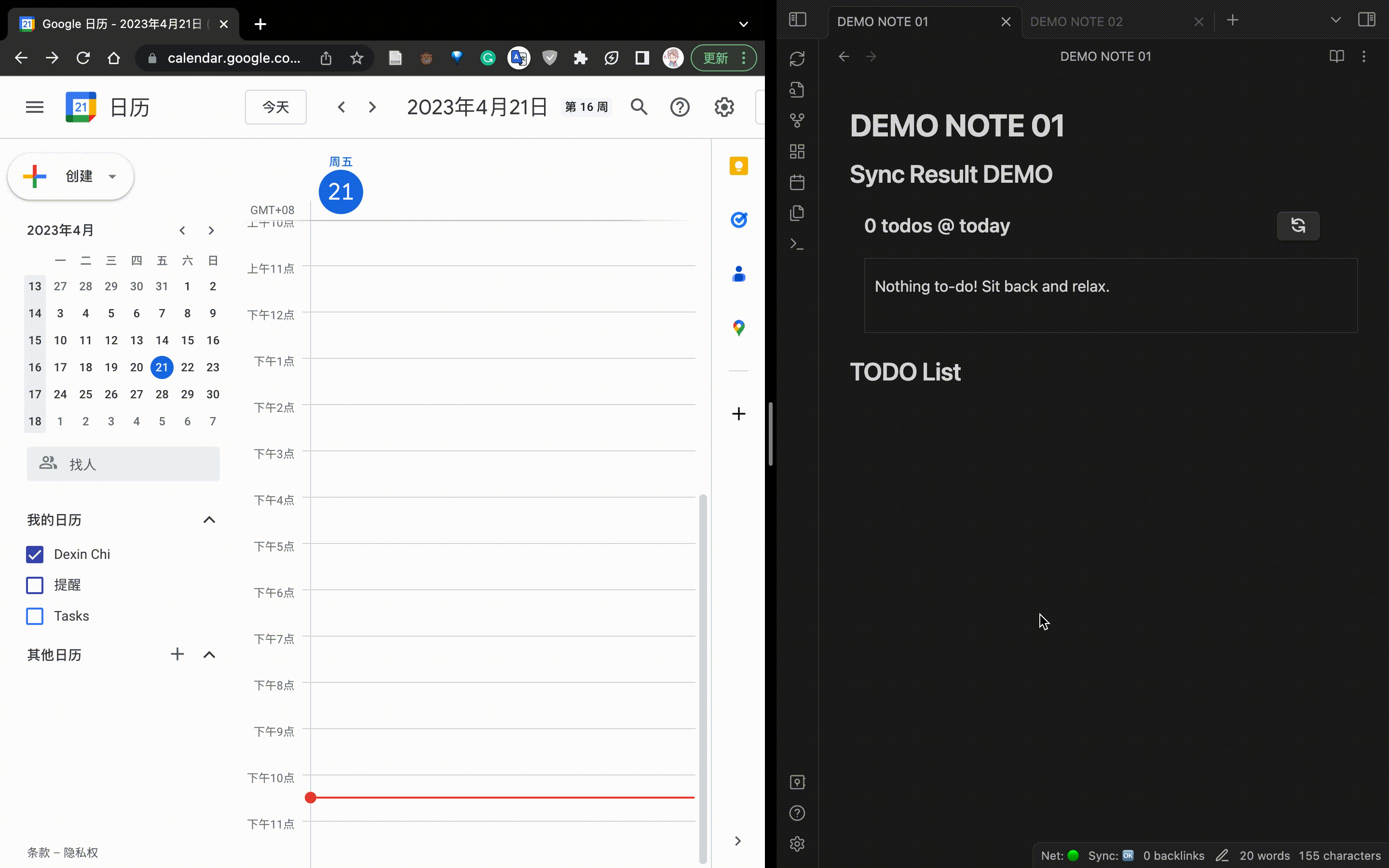 Sync with Calendarcommand. - Our task synchronization is centered around calendar events, which means that after syncing tasks from Obsidian to the calendar, modifications to tasks in Obsidian will not be synced to the calendar. To further modify the schedule, you need to modify it directly in the calendar. The changes made in the calendar will be automatically synced back to Obsidian later.