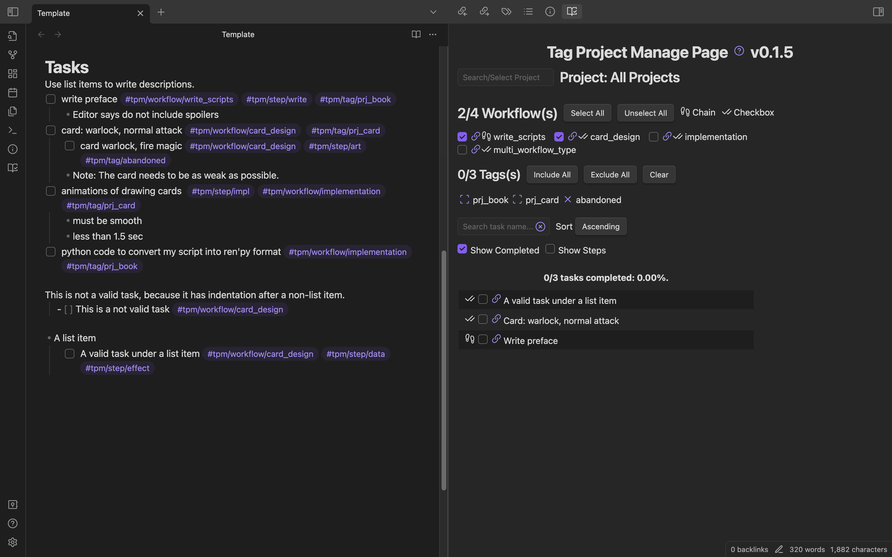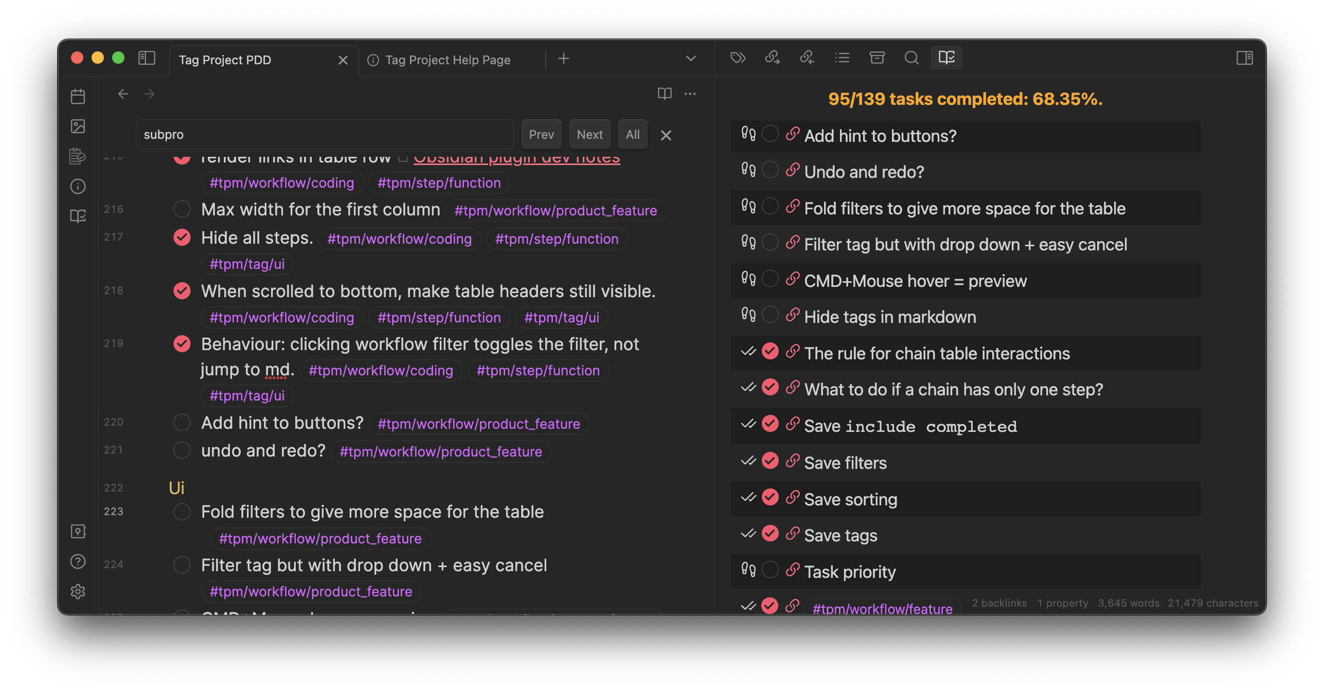Tag Project extends Dataview, giving you freedom to manage projects and track progress anywhere in your Obsidian vault.