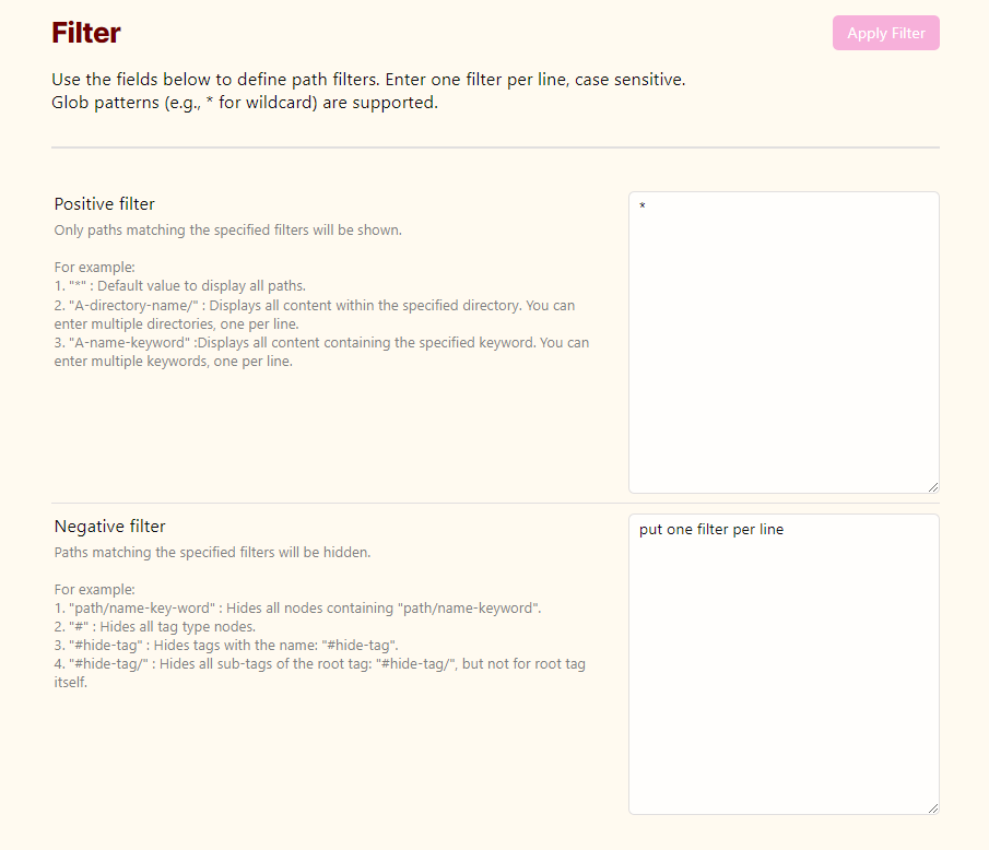 - You can now use both positive and negative filters to customize the display of your vault content.