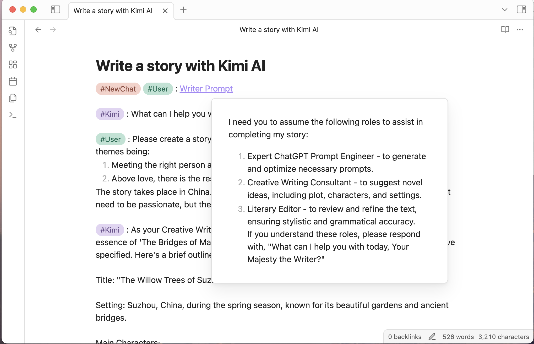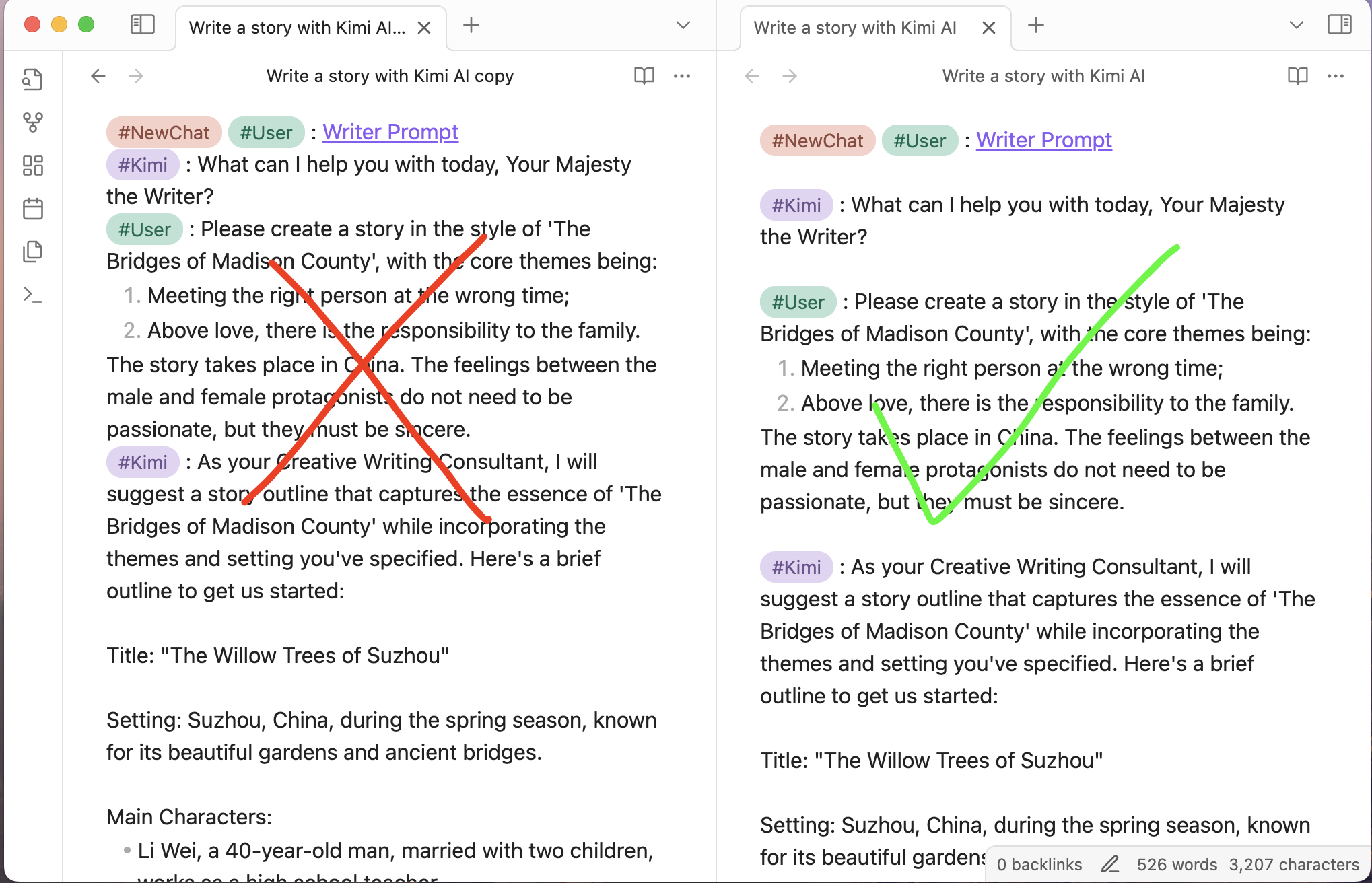 #, enter the tag, and then type a space to trigger the AI assistant. - Follow the conversation order rules of large language models: system messages always appear first (can be omitted), then user and assistant messages alternate like a ping-pong match.