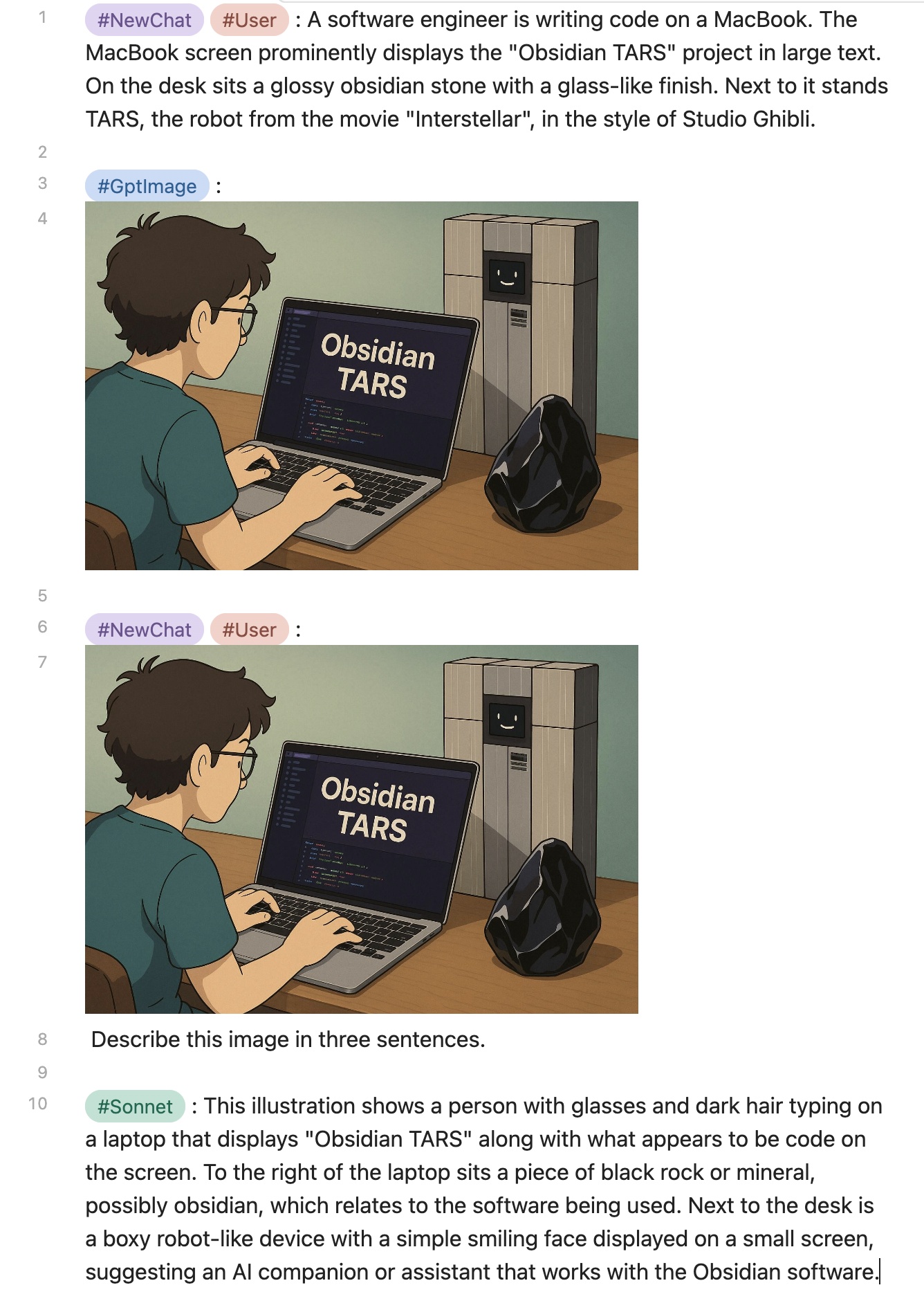 Tars is an Obsidian plugin that supports text generation based on tag suggestions, using services like Claude, OpenAI, Gemini, 🔥DeepSeek, 🔥SiliconFlow, 🔥OpenRouter, Ollama, Kimi, Doubao, Qwen, Zhipu, QianFan & more. The name Tars comes from the robot Tars in the movie "Interstellar". The plugin supports both desktop and mobile devices.