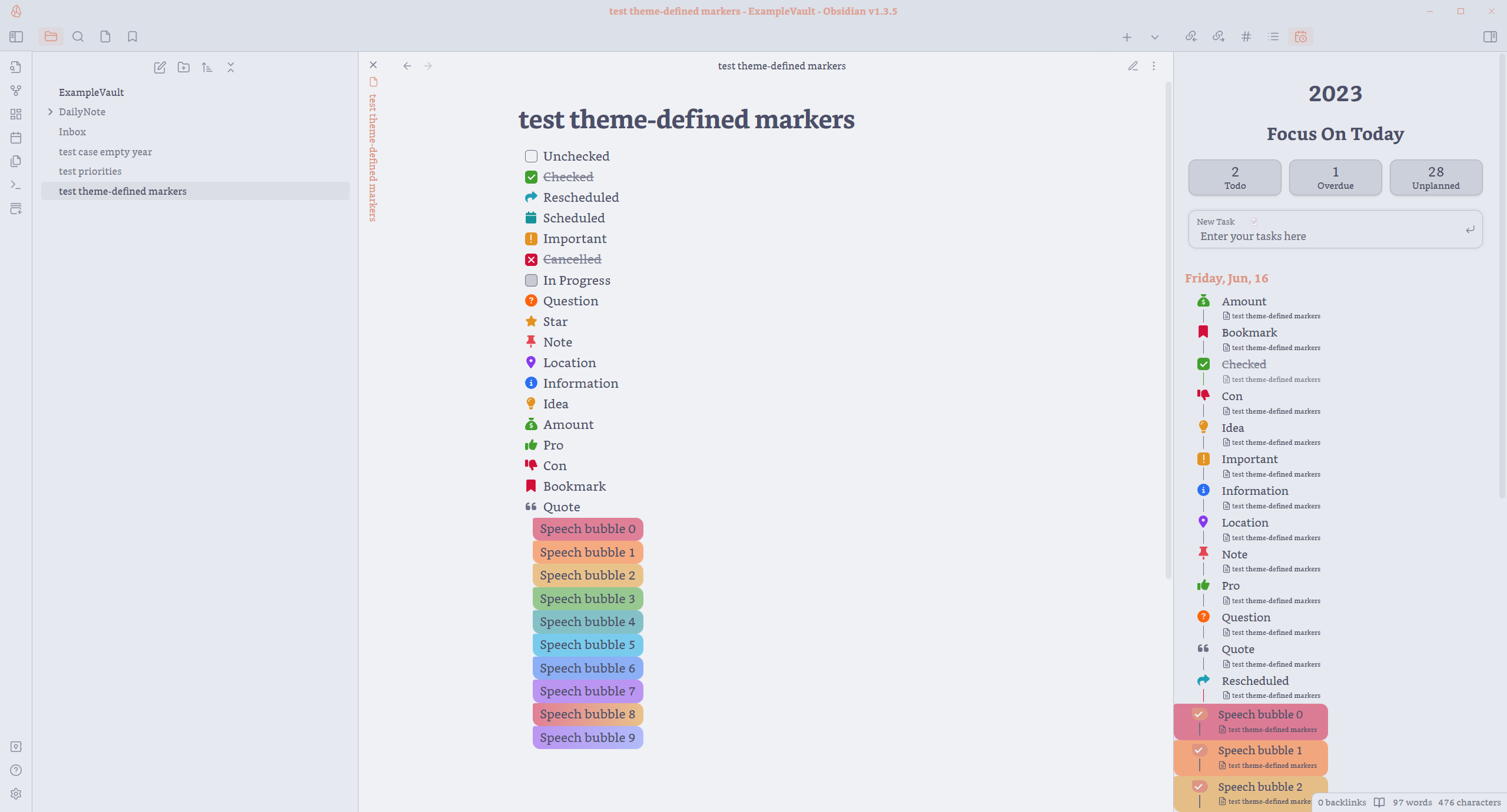 The ExampleVault provides an example using this plugin, the screen shot with the Blue-Topaz light theme is as follows: