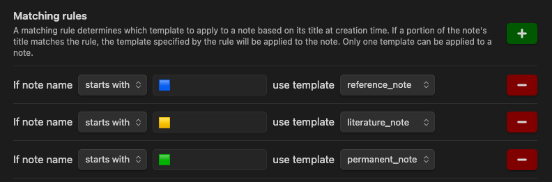 - Multiple match options: Choose from prefix, suffix, or contains to template notes
