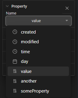 The plugin detects all properties within your vault and lists any numeric (date, datetime, or number) properties as available options. Once a property is selected, the notes automatically rearrange, and the timeline adapts to the appropriate measurement.