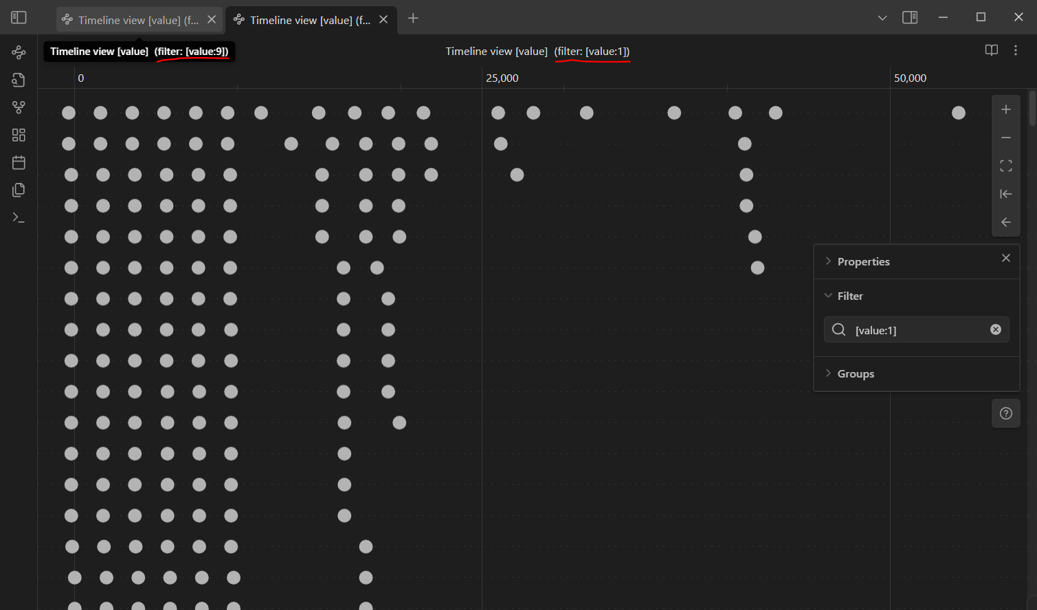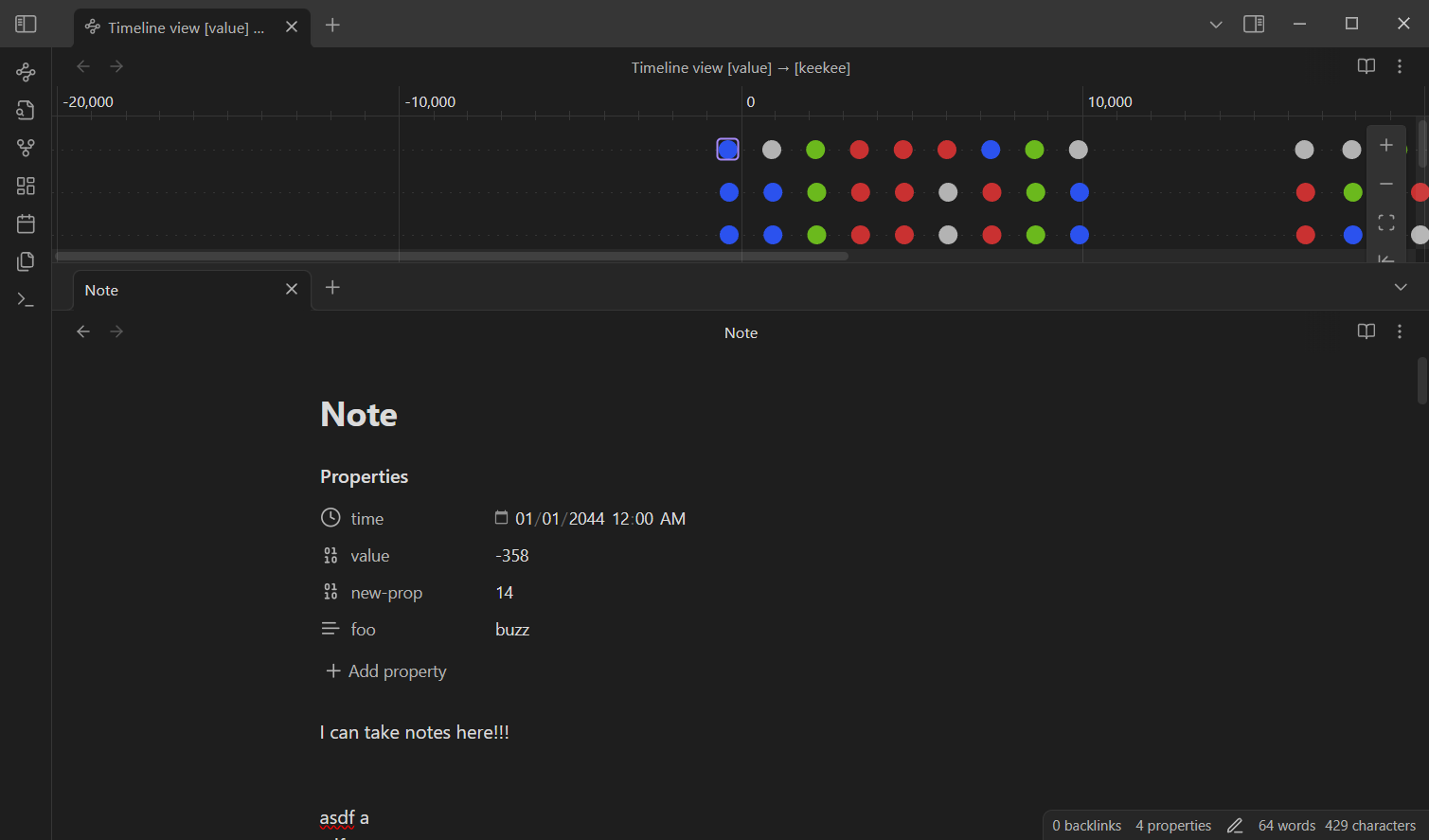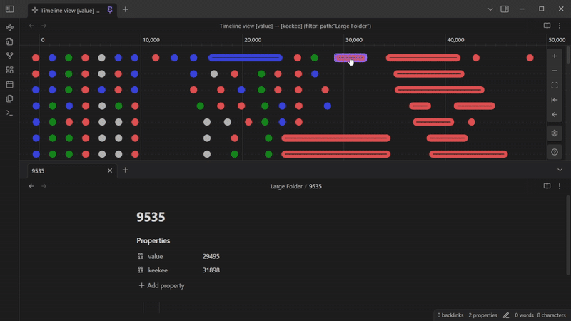 - Quick Note Creation: Double-click anywhere on the timeline or number line to create a new note with the property value set based on where you clicked.