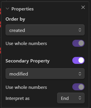 Each Timeline View orders your notes based on a property of your choice, which defaults to the creation time. You can open multiple views, each with its own selected property.