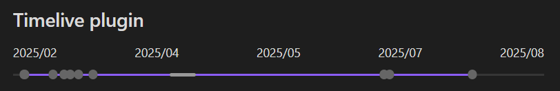 To build a timeline, you need to define a list of dates, enclosed by the | symbol. The date format is automatically detected, but in case of ambiguity, the preferred format can be selected in the preferences. You can also generate a placeholder with the Timelive: New block action (accessible from Ctrl+P Command Palette).