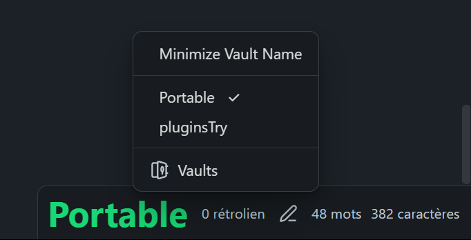 - Vault Name in Status Bar: See your vault name at a glance, with one-click access to the vaults menu.