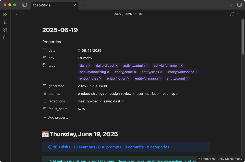 Daily Digest captures all of that and turns it into something you can actually read tomorrow, next week, or six months from now.