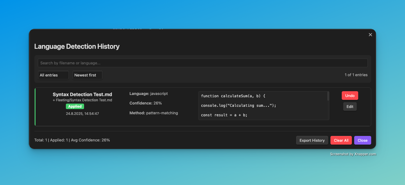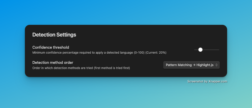 - Highlight.js Detection: Utilizes the proven Highlight.js library for precise language recognition