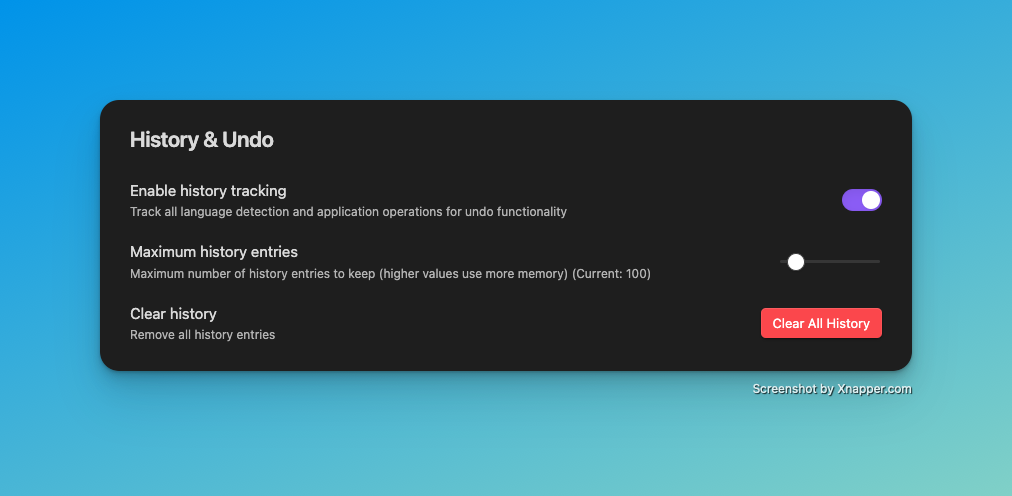 Enable history tracking: Enables tracking of all detection and application operations for undo functionality.