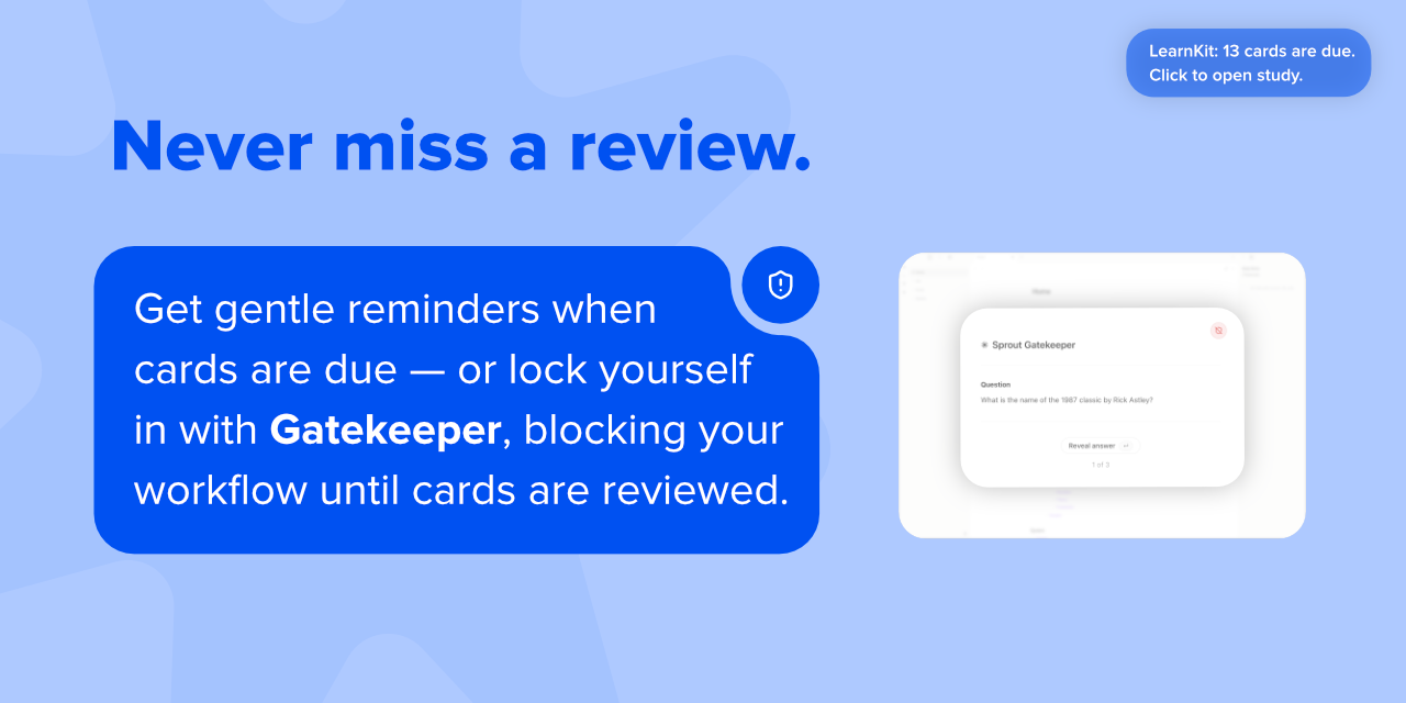 Flashcards are where LearnKit started, but the goal was always bigger: to turn your vault into a memory layer that connects notes, review, and long-term retention.