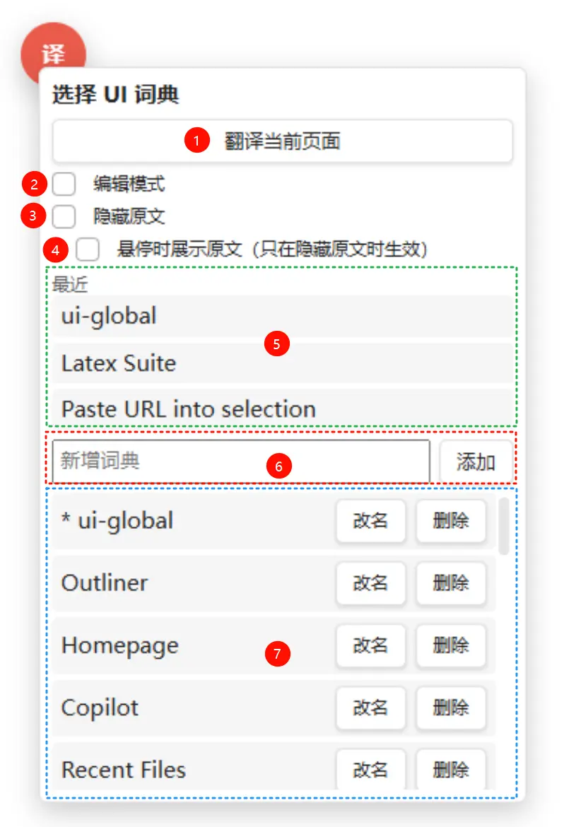 - UI 词典管理:悬浮球右键新增/改名/删除/最近