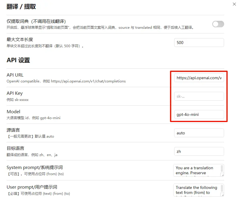 - 允许用户自定义 API Key(BYOK),使用 OpenAI 兼容的大语言模型驱动翻译