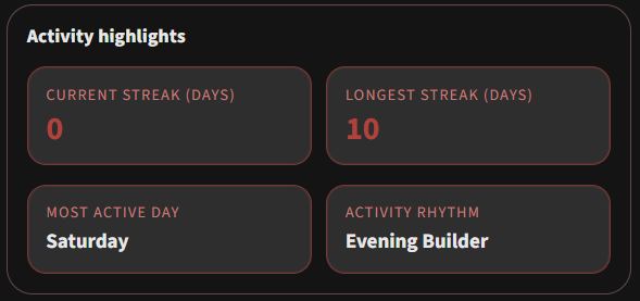 - Streak stats and activity highlights