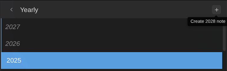 - Select or create a yearly note, then