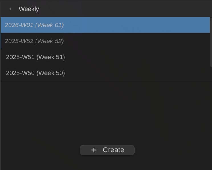 - Select a certain week → see all daily notes from that week in the column to the left