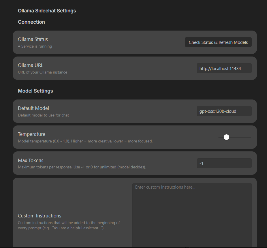 .obsidian/plugins/ollama-sidechat/ - Enable the plugin in Obsidian Settings ā Community Plugins