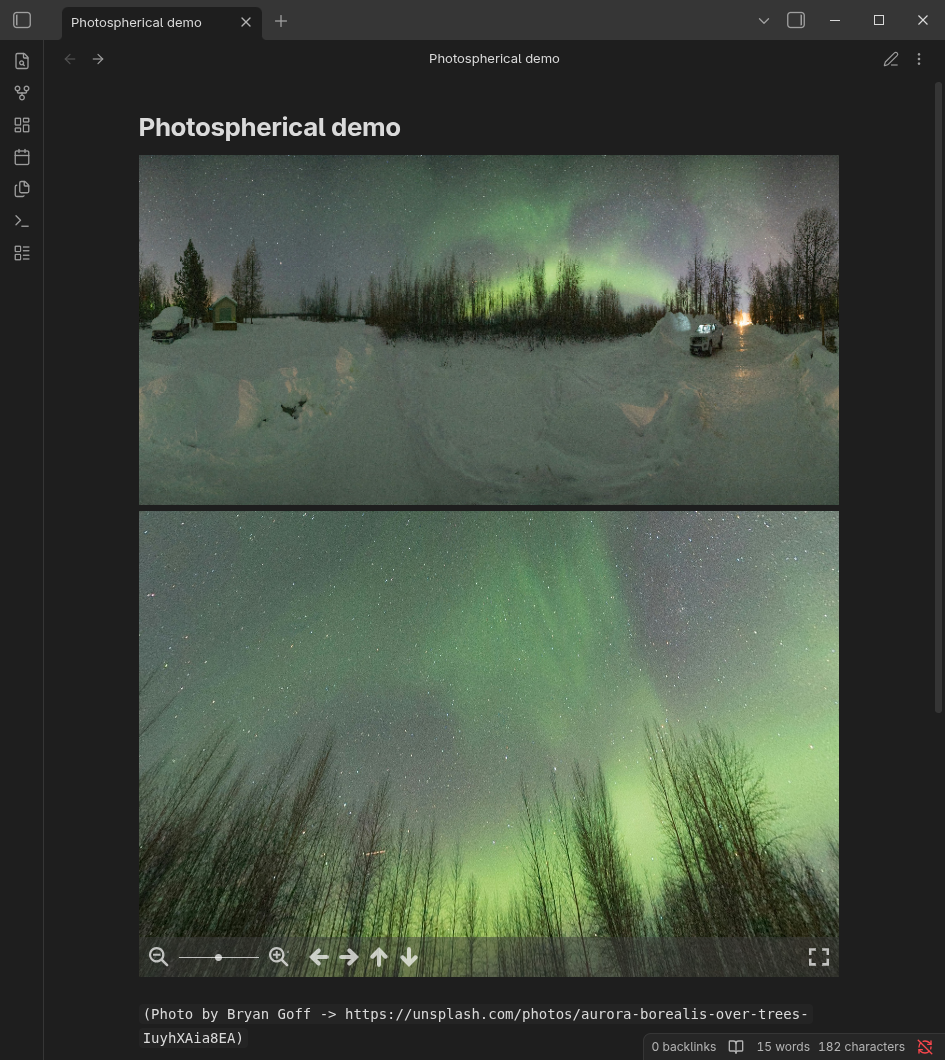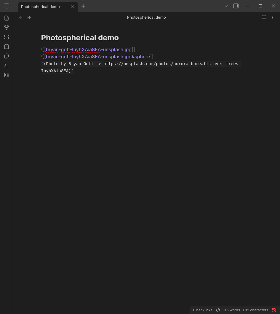 #sphereto the image filename. In reading mode the image element will be replaced with a photosphere viewer.