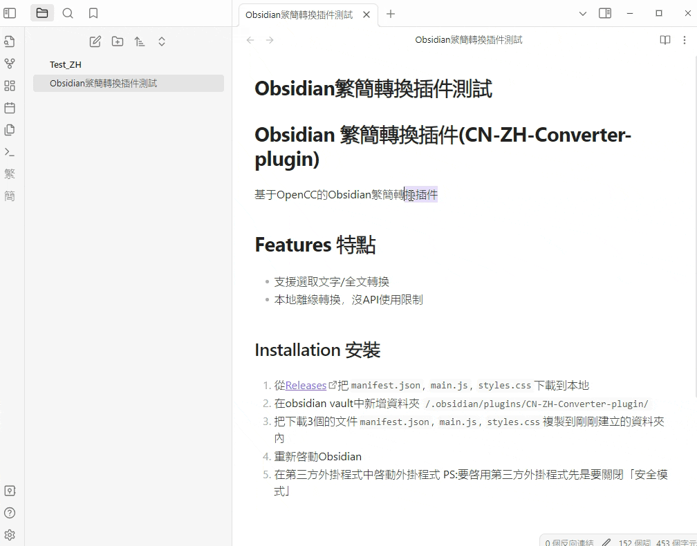git clone https://github.com/s2031215/zh2cn-Converter-obsidian.git - 在這個專案中執行
