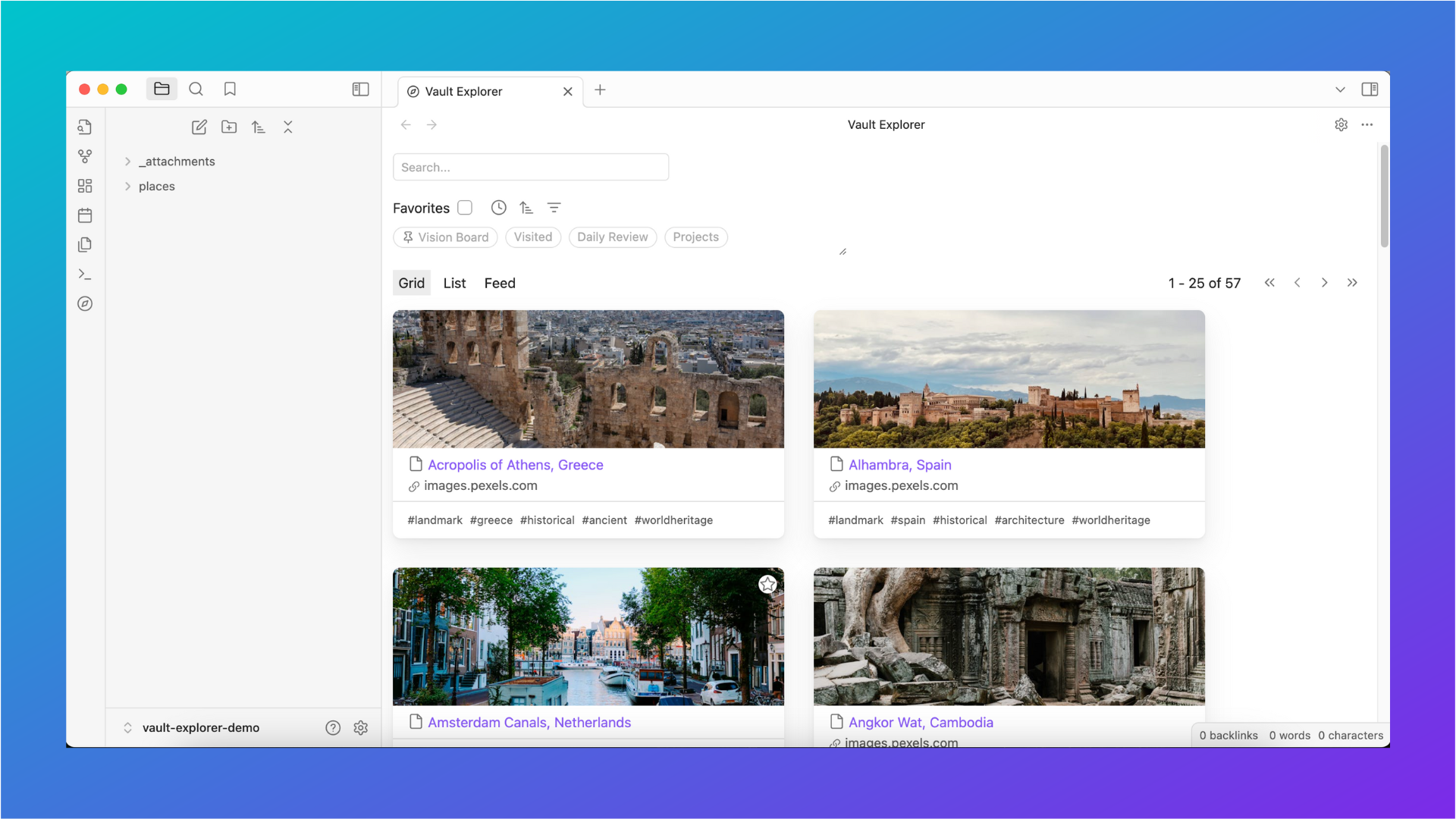 Vault Explorer is an Obsidian plugin that leverages frontmatter properties to help you explore and organize your vault files.