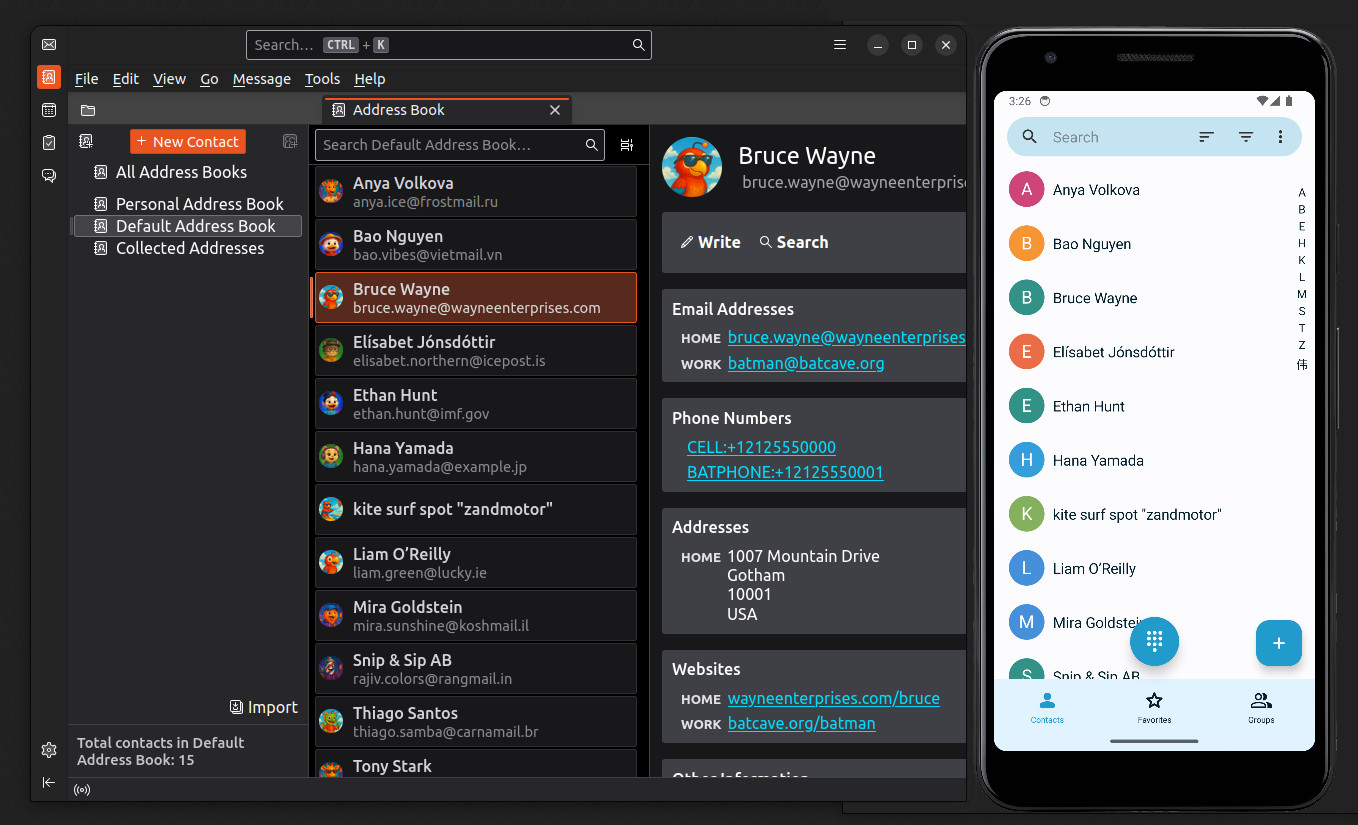 βββ Thunderbird (or any CardDAV-capable email client) (read only)
