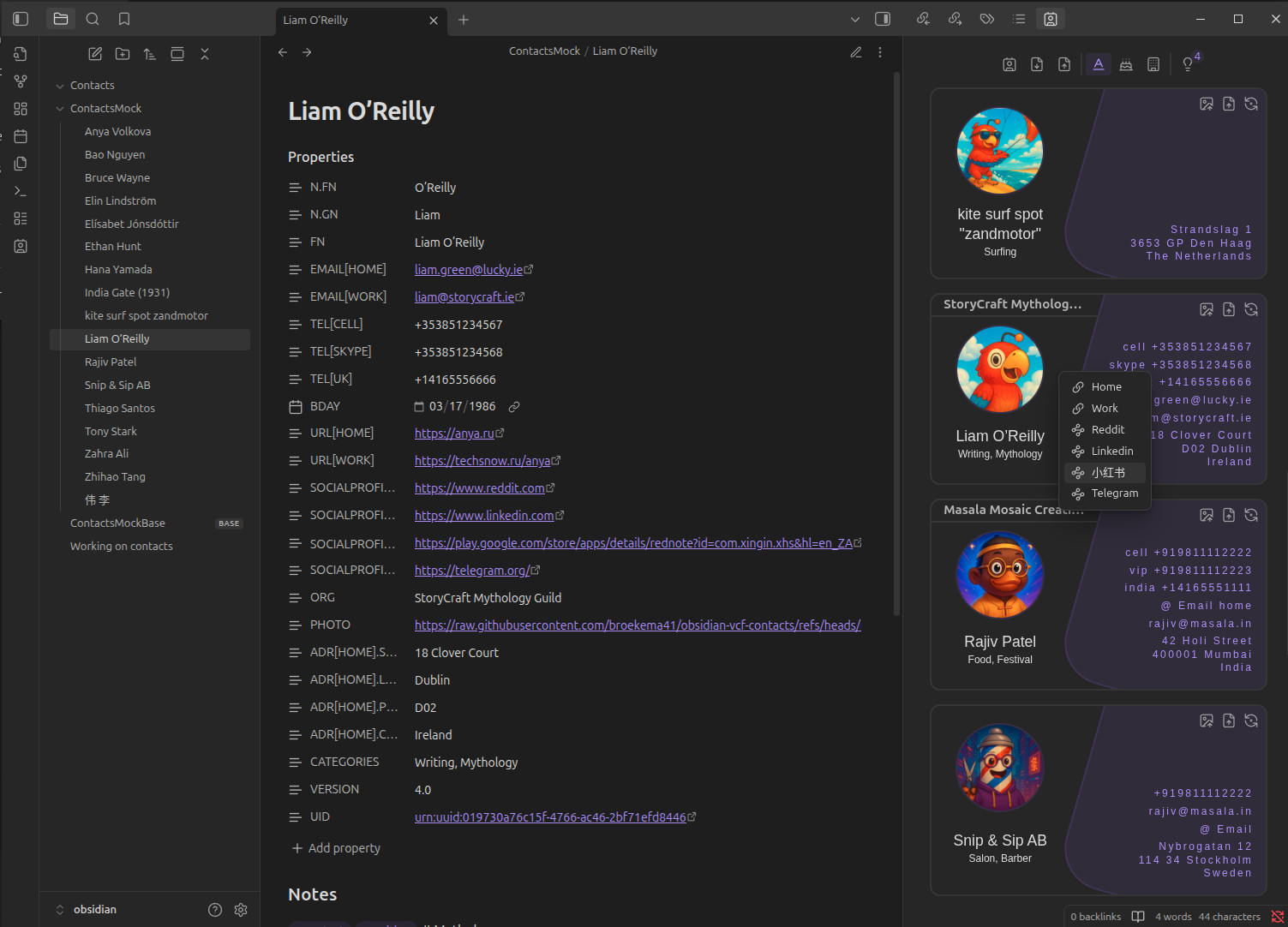 - VCF Contacts Plugin for Obsidian