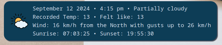 Quite a while ago a user requested a feature that was not available in the Open Weather API but mentioned it was available in the Visual Crossing API. After looking closer at the API I saw many advantages in switching to over to it. The only thing that had stopped me is it meant a complete re-wite of the plugin as the differences in the API's was far to great and having to maintain 2 plugins that did the same thing seemed pointless. Now that Open Weather has discontinued API 2.5 I am free to develop this new plugin.