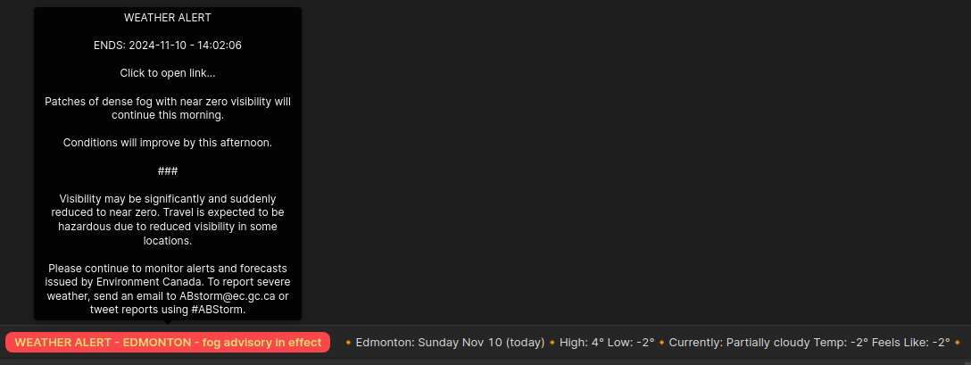 Show weather alerts in the statusbar